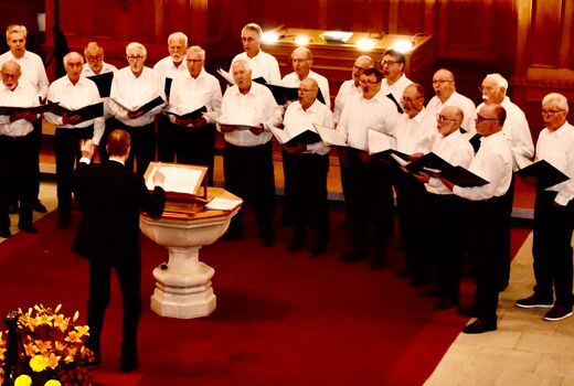 Am 24. Mai 2025 wollte es der Männerchor wieder einmal wissen, wo er steht. So trat der Chor am Kantonalen Gesangsfest in Sins im Freiamt auf. Sein Auftritt wusste sehr zu gefallen und wurde mit viel Applaus bedacht! Dies tat den Sängern gut, denn mit dem Passerau (von um 1540), neu gesetzt von Tobias von Arb, hatte sich der Chor ein hehres Ziel gesetzt. Der 4-stimmige fugenhafte Satz mit seinem schnellen Tempo kratzte an der oberen Grenze unserer Möglichkeiten. Und, die Jury sagte: Il était bon! Mit dem Lied «das Morgenrot», von R. Pracht nach einem Gedicht von K. Hoffmann eröffneten die Sänger den Auftrittsreigen. Die Dynamik des Liedes klang beinahe wie ein mystisches Gebet in der schönen Barock-kirche von Sins. Der Chor zeigte nochmals sein vielseitiges Können mit den Visionen eines weinseligen Zechers von Wilhelm Heinrichs – «Blauer Mond»; die anspruchsvolle Parodie gelang bestens. Glücklich und zufrieden verbrachten wir noch einige frohe Stunden im geselligen Kreise der grossen Sängerschar im Freiamt.